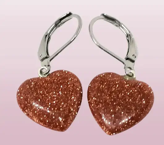 Naušnice srdíčka větší, avanturín zlatý s ocelíihned 3 ks150 Kč/ ks124 Kč bez DPH