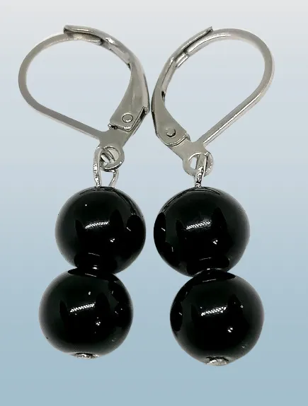 Naušnice z černého onyxu s chirurgickou ocelí.