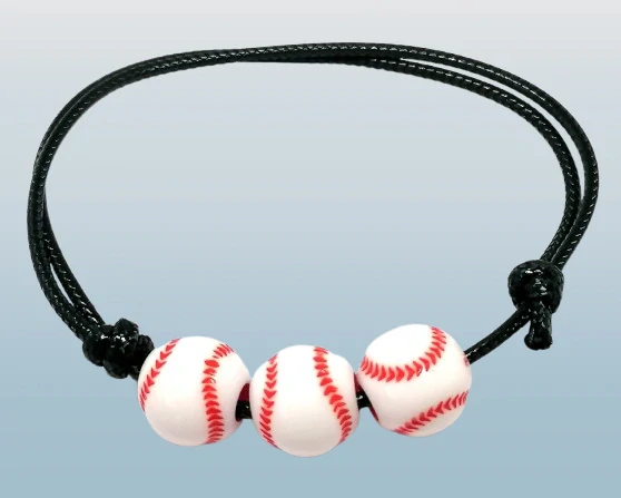 - Baseballový náramek – černý provázek s třemi míčky, unisex doplněk pro děti i teenagery