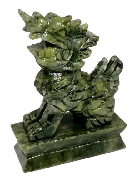 Tato dekorativní soška představuje čínského draka vyřezaného z kvalitního tmavě zeleného nefritu. Každý kus je originál – unikátní svou kresbou kamene, ale věrný tradičnímu ztvárnění.🟢 Materiál: přírodní nefrit (světle zelený)