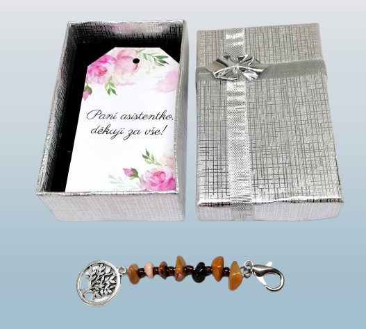 Chcete paní asistentce darovat něco originálního, co bude nejen krásné, ale i symbolické? Tato klíčenka s motivem Stromu života a kamenem tygří oko je ideální jako poděkování za její pomoc, trpělivost a podporu. Díky dárkové krabičce a kartičce „Pro paní asistentku“ je připravena rovnou k předání.