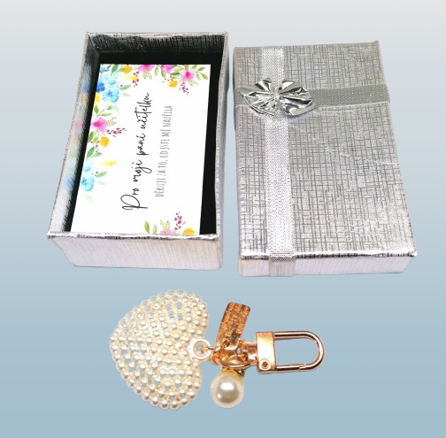 Dárkově balená klíčenka srdíčko s kartičkouihned 7 ks155 Kč/ ks128 Kč bez DPH
