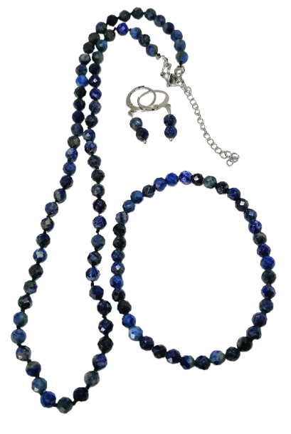 Luxusní sada z lapisu lazuli – fasetovaný náhrdelník, náramek a náušnice
