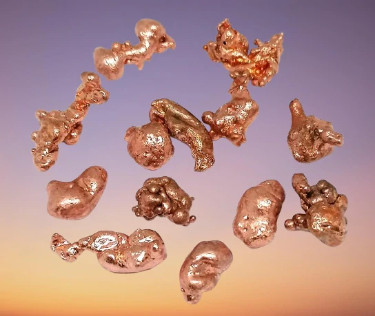 Měděné kousky.