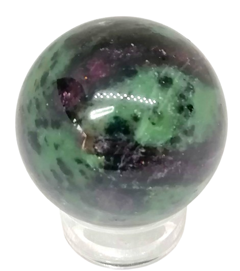Exkluzivní koule z minerálu rubín v zoisitu o průměru 4,3 cm je jedinečnou kombinací dvou mocných kamenů. Spojuje energii ohnivého rubínu s uzemňující silou zeleného zoisitu. Tento přírodní minerál je vyhledávaný nejen pro svou krásu, ale také pro silné duchovní a léčivé účinky. Váha této koule je 145 g.