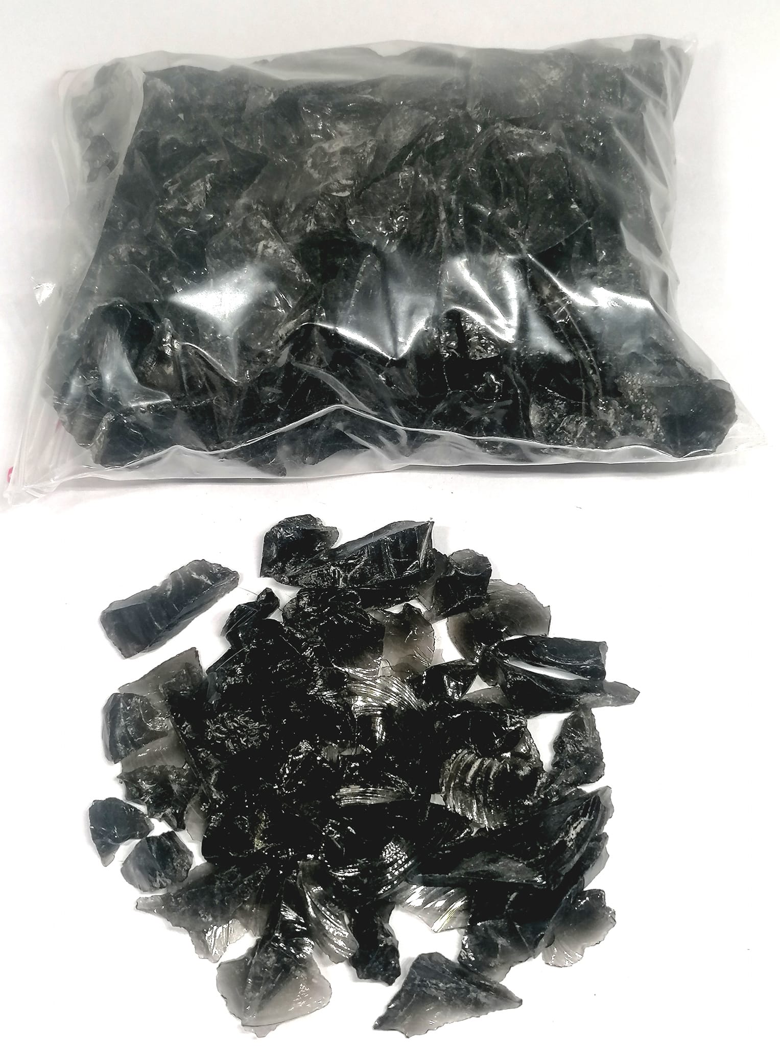 Balení obsahuje 300 g přírodního, štípaného obsidiánu černého.