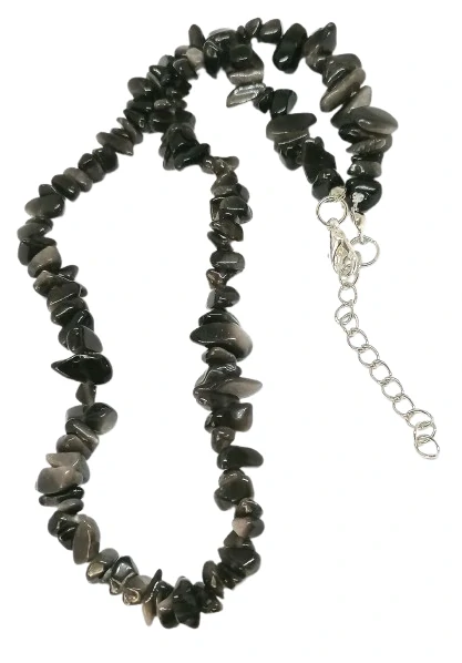 - Obsidián stříbrný, sekaný, krátký náhrdelník