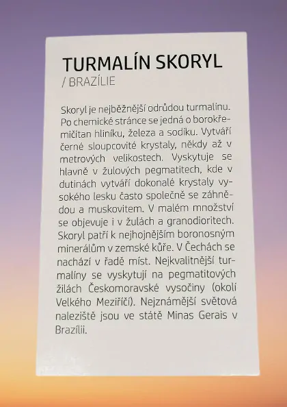 Kartička k minerálu - TURMALÍNU SKORYL.