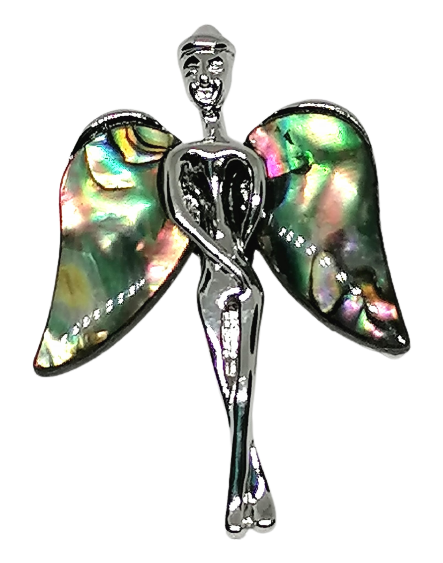 Brož a přívěsek andělíček s paua mušlí.
