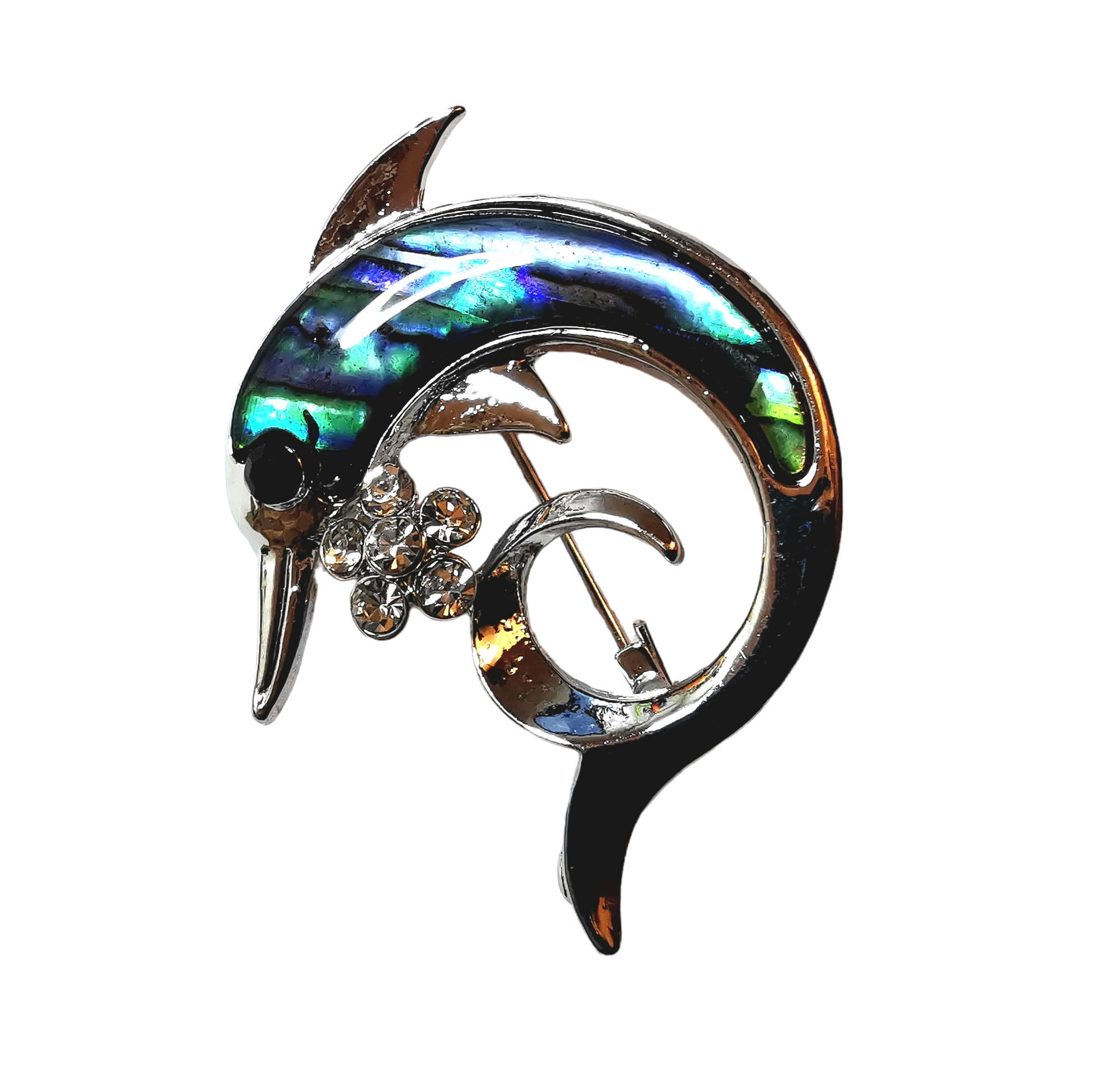 Brož a přívěsek z paua mušle, delfín. Kovové části jsou z bižuterního kovu.