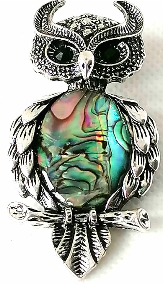 Brož sovička malá z Paua mušleihned 3 ks160 Kč/ ks132 Kč bez DPH
