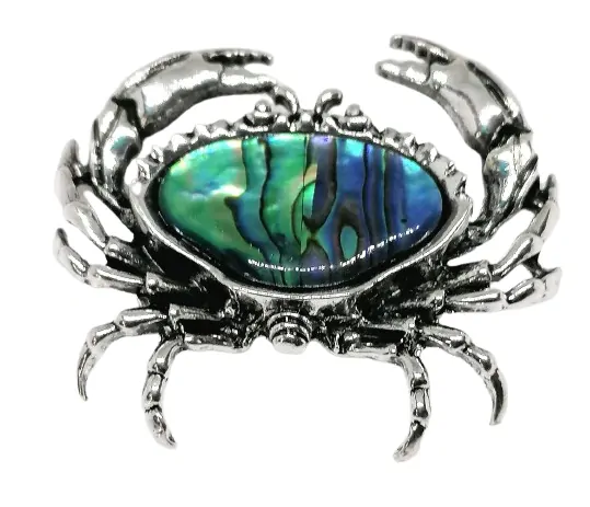 Elegantní brož a přívěsek v jednom – ve tvaru kraba s pravou paua mušlí z Nového Zélandu.