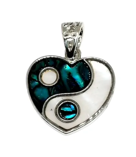 Přívěsek Jin-Jang s mušlí paua - srdíčko