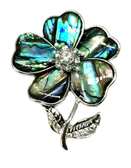 Přívěsek a brož z paua mušle, který je zasazený do bílého kovu, neobsahujícího nikl. Na zadní straně je i ouško k zavěšení na řetízek. Získáváte tak dva produkty v jednom.