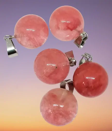 Jahodový křišťál přívěsek kulička cca 1,5 cmihned 4 ks55 Kč/ ks45 Kč bez DPH