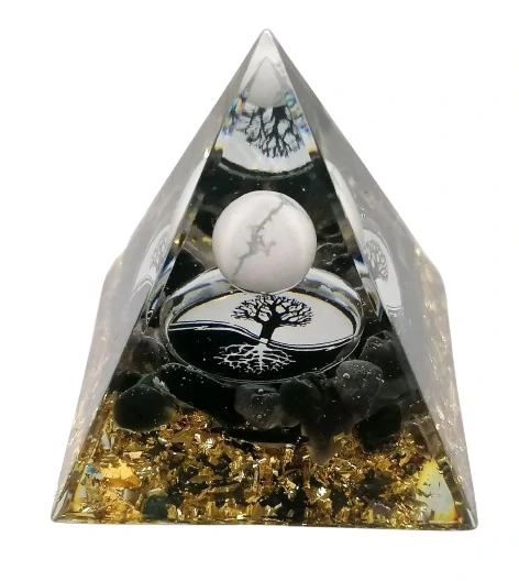 Orgonitová pyramida z onyxu, kuličky magnezitu a symbolem strom života jako JIN JANG.