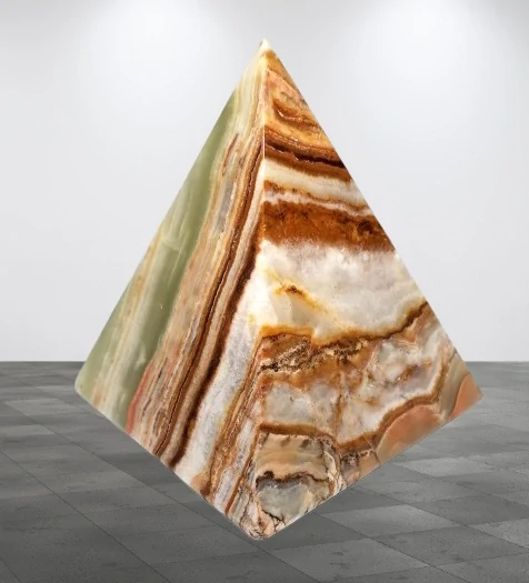 Dekorativní pyramida z přírodního aragonitu o velikosti cca 10 cm. Kámen zaujme nádhernou, výraznou kresbou, která prostupuje celou pyramidou a vytváří jedinečný přírodní vzor.