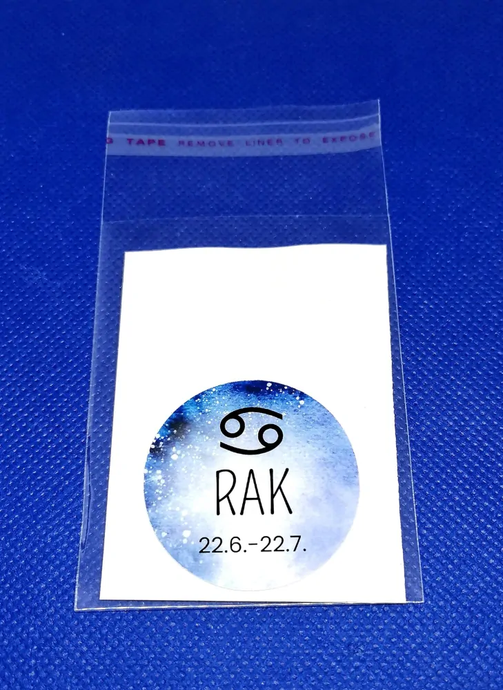 Celofánový sáček s nalepenou samolepkou na zabalení kamínku, náramku, prostě něčeho co se vztahuje k jednotlivým znamením zvěrokruhu.