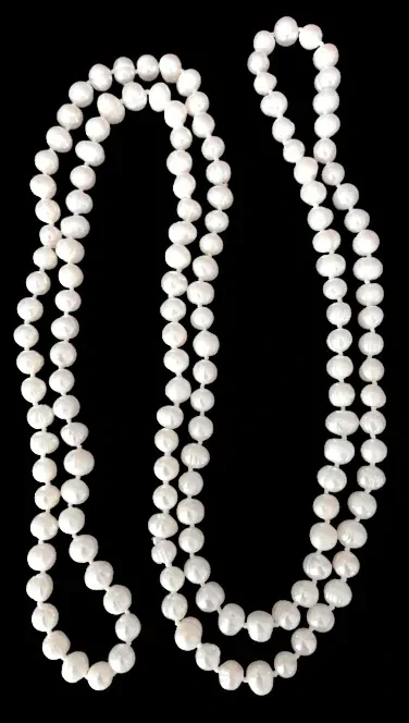 Náhrdelník z pravých říčních perel – dlouhý, bez zapínání, bílé perly, 60 cm