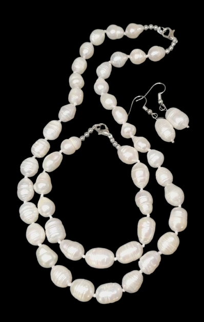 - Říční perly sada, náramek, náhrdelník a náušnice s ocelí