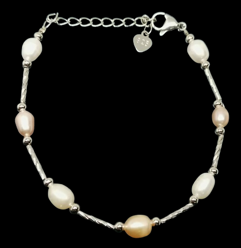 Klíčová slova (SEO): náramek říční perly, perlový náramek, tříbarevné perly, chirurgická ocel šperk, hypoalergenní náramek, dámský náramek, elegantní šperk, perly symbolika