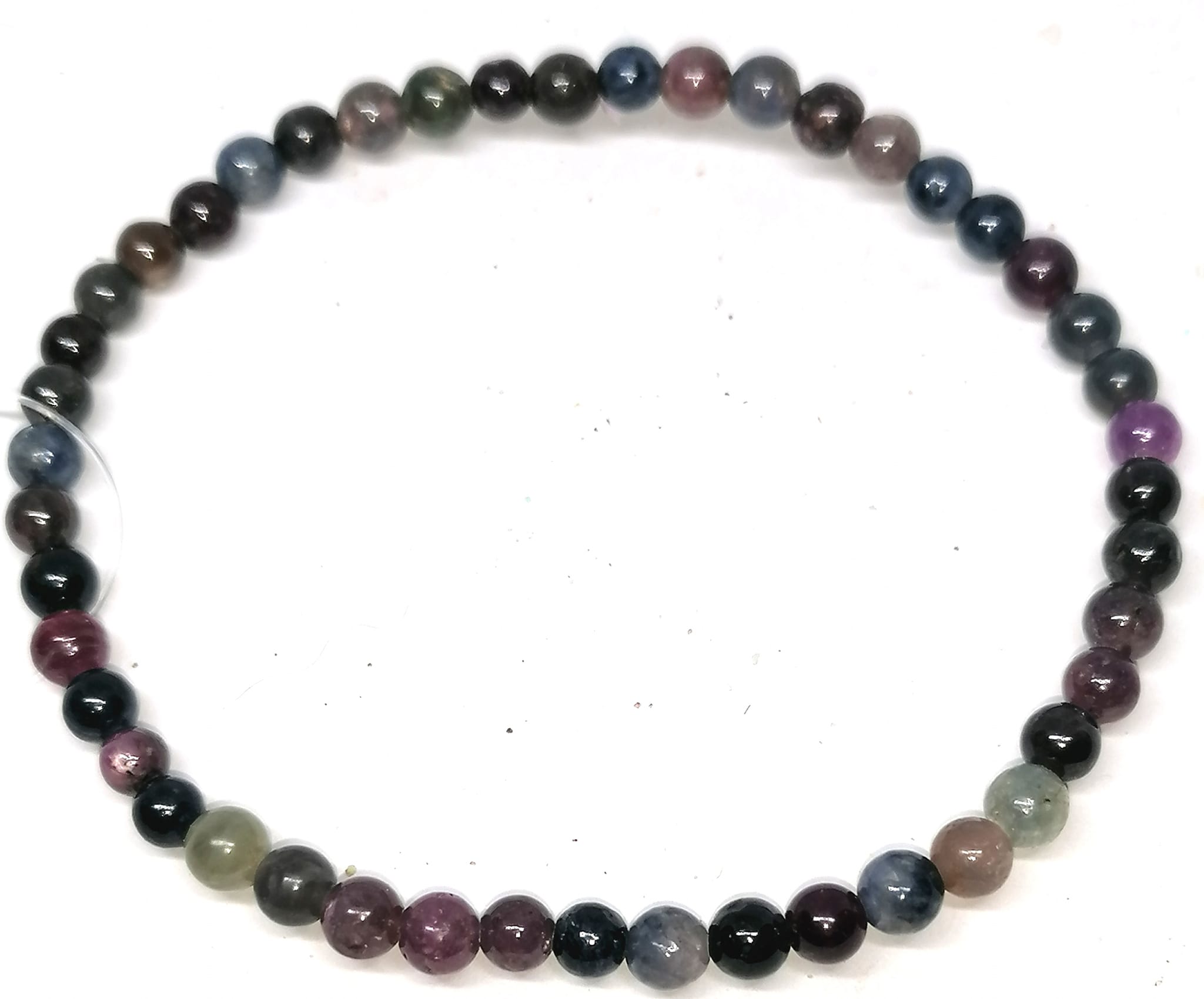Náramek z mixu kamenů rubínu a safíru. Kuličky jsou o velikosti cca 4 mm.