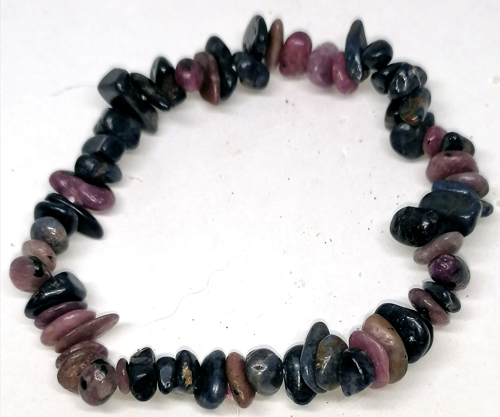Náramek z mixu sekaných tromlovaných kamenů rubínu a safíru.