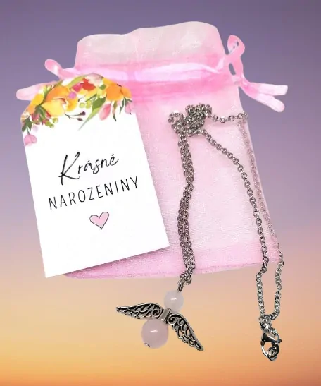 - Dárkové balení - anděl z růženínu s řetízkem z chir. oceli