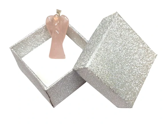 Přívěsek růženínový anděl pro štěstí v dárkovém balení.