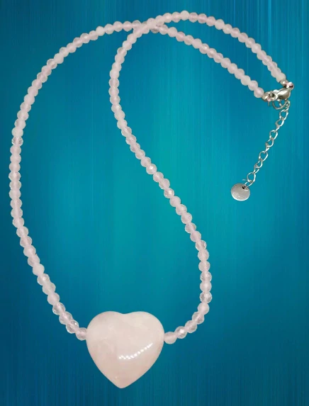 - Náhrdelník z přírodního růženínu s chirurgickou ocelí – symbol lásky