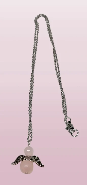 Růženínový andělíček s řetízkem z chirurgické oceli..