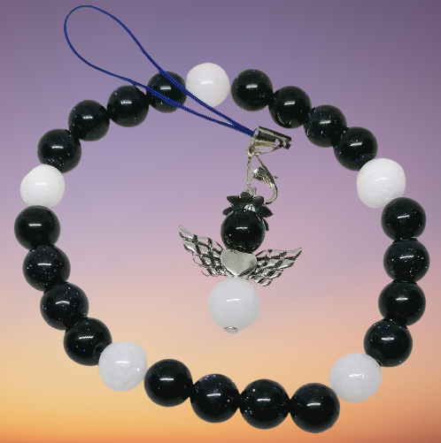 K sadě náleží také přívěsek anděl, který lze bud přivěsit na kabelku, klíče, nebo karabinku rozepnete a anděl může přijít na řetízek a na krk k celé sadě.