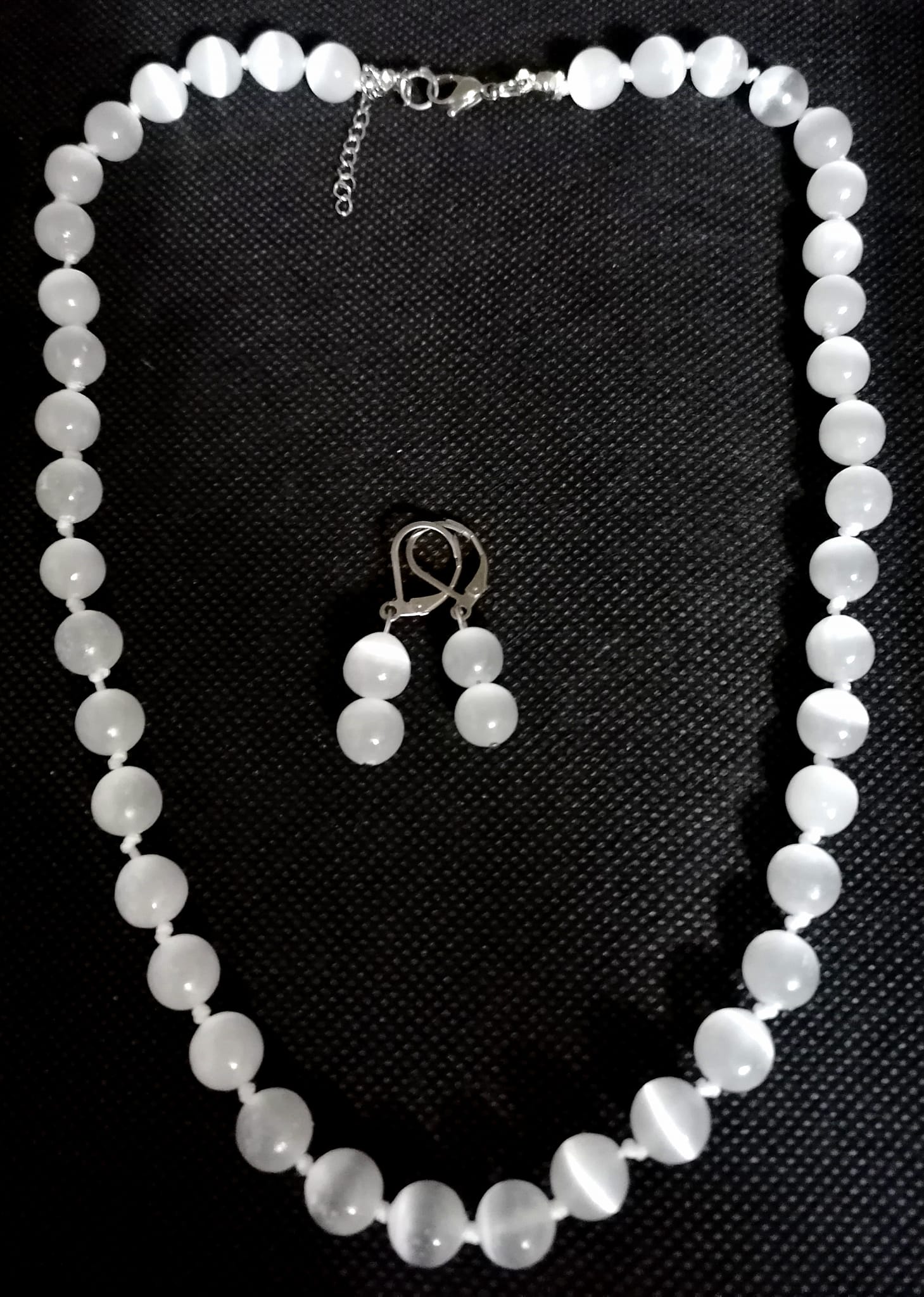 Selenitová sada šperků – náhrdelník a náušnice z minerálu (8 mm)
