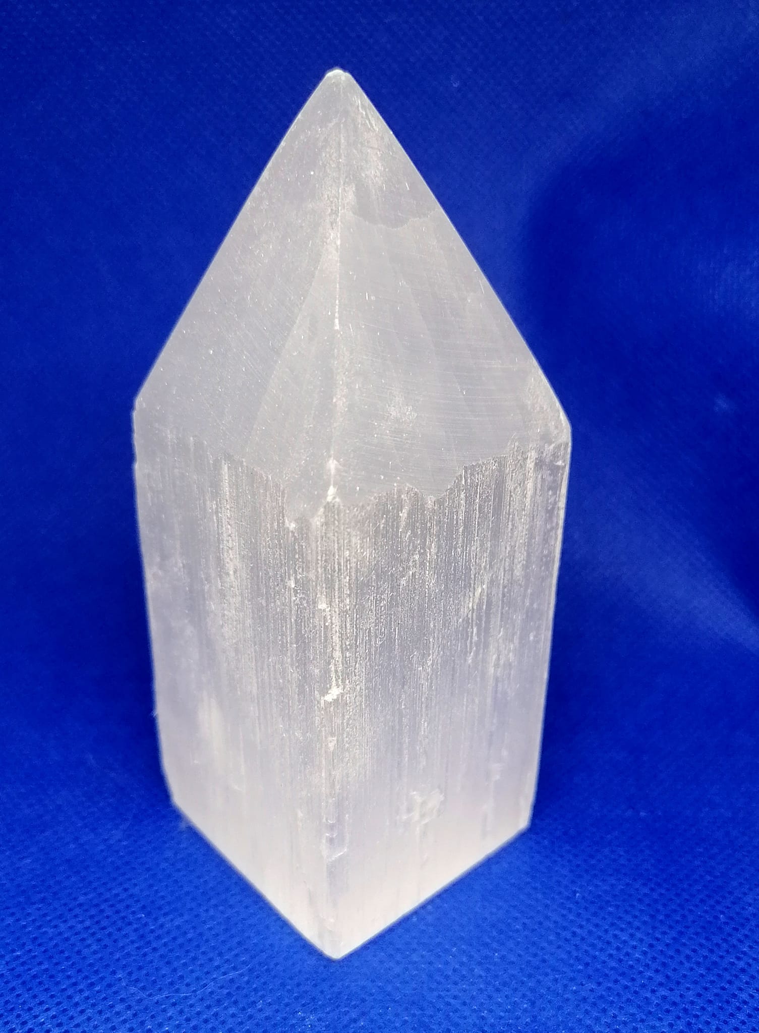 Průsvitný selenit se vyznačuje velice jemnými vibracemi. Do mysli vnáší jas, otevírá korunní a vyšší korunní čakru. Umožňuje přístup k andělskému vědomí a duchovnímu průvodci.