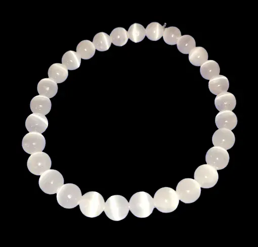Náramek ze selenitu tvořený z leštěných kuliček o průměru cca 6 mm je jemný, elegantní a zároveň silně působící minerální šperk. Selenit je známý jako kámen duchovní očisty, klidu a ochrany. Pomáhá uvolnit napětí, vyrovnávat emoční výkyvy a posiluje intuici.