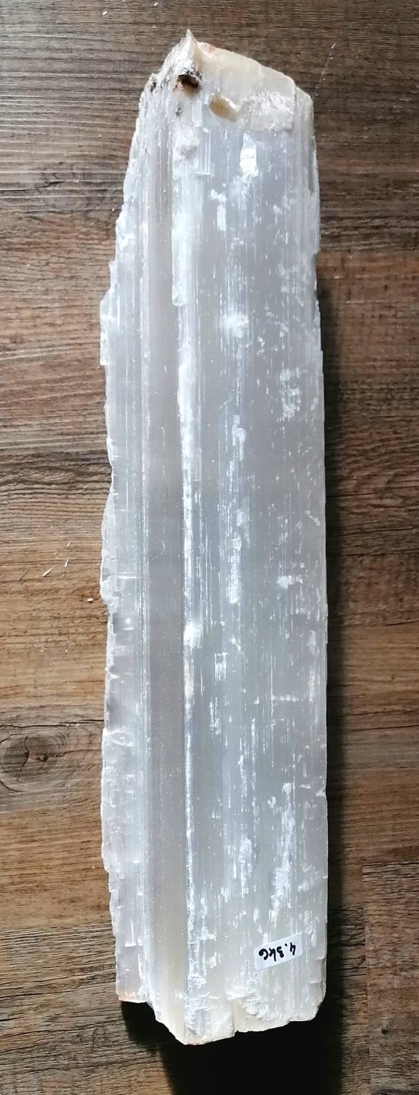 Obří selenitový krystal o hmotnosti 4,3 kg a délce 43,5 cm je jedinečný přírodní úkaz z Maroka. Tento mohutný kus nebyl nijak upravován – zachovává si surovou, přírodní podobu tak, jak byl vytěžen. Vhodný k dalšímu zpracování, nebo jako energetický harmonizér do prostoru. Díky své velikosti a čistotě je ideální pro meditaci, očistu prostoru, práci s čakrami i jako sběratelský kámen.
