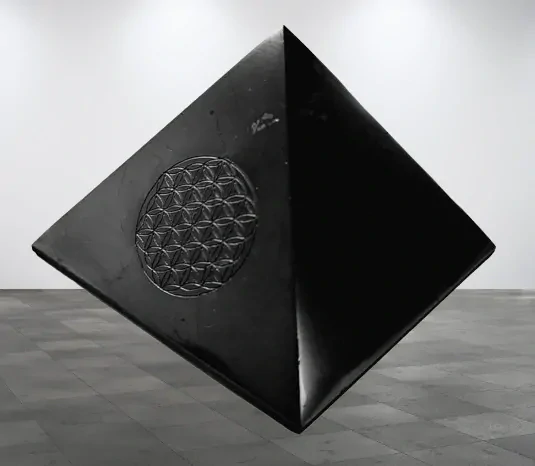 Šungitová pyramida s květem života – 4 cm, harmonizační kámen
