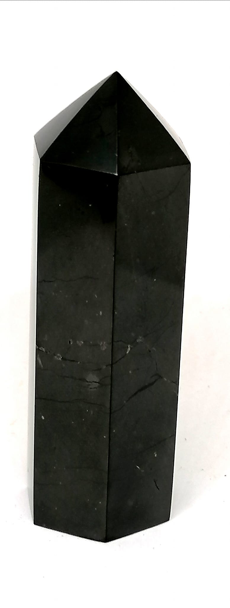 Tento exklusivní šungitový krystal o velikosti cca 7,5 cm a průměru kolem 2,5 cm pochází z oblasti Karélie v Rusku, která je jediným známým ložiskem pravého šungitu na světě. Každý kus je ručně opracovaný originál, s jemným leštěním a unikátními přírodními rysy. Rozměry se mohou lehce lišit, což podtrhuje jedinečnost každého kamene.