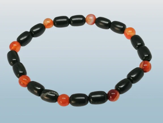 Náramek ze šungitu v AA kvalitě, navlečen je pro Vás z exkluzivních oválků namíchaných s kuličkami karneolu. Kuličky jsou cca 6 mm.