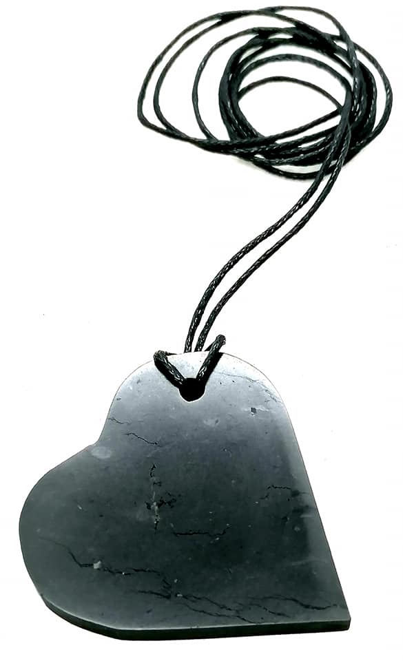 Šungitový přívěsek na krk, srdíčko malé. Všechny šperky ze šungitu mohou ještě nějakou dobu pouštět drobný černý prach, je vhodné je omýt v teplé vodě a důsledně promnout mezi prsty.
