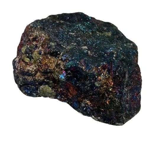 Přírodní chalkopyrit o váze 61 g a rozměrech 4,5 x 4 x 1,9 cm. Tento jedinečný kámen zaujme svým kovově zlatým leskem s nádhernými duhovými odlesky modré, fialové a tyrkysové barvy, které vznikají přirozenou oxidací povrchu. Chalkopyrit je oblíbený jak mezi sběrateli minerálů, tak v esoterice pro své silné energetické a očistné účinky. Kupujete přesně tento kus z fotografie.