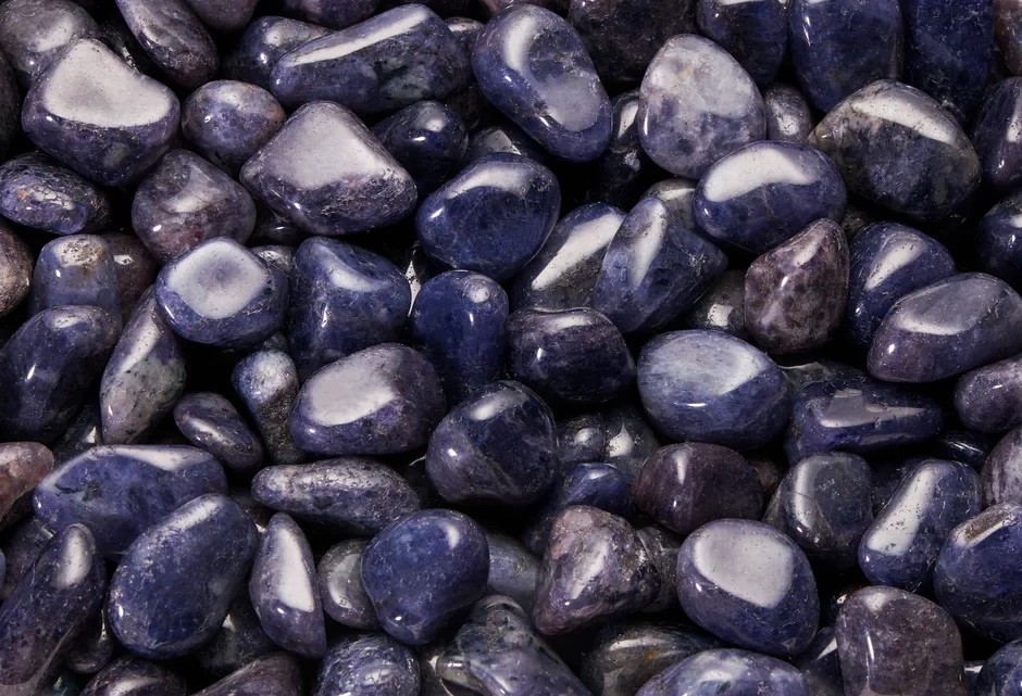 Iolit je vlastně cordierit fialovo-modré barvy. Jde o hojný horninový minerál, který byl objeven v roce 1813 a pojmenován podle francouzského geologa P. Louise Cordiera. Patří do skupiny cyklosilikátů bohatých na hliník. Bývá nazývaný také jako vikingský kompasový kámen (díky svému pleochroismu sloužil jako polarizační filtr a pomáhal lokalizovat slunce i v oblačných/mlhavých dnech). Název iolit je odvozen z řeckého slova "ion", což znamená fialová. Při pohledu pouhým okem vykazuje iolit tři různé barvy, proto se říká, že je trichroický (jeden z pleochroických odstínů modré připomíná safír - vysloužil si tedy název "modrý safír"). Náš materiál pochází z Indie.