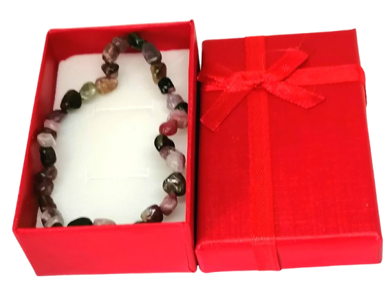 Barevný turmalínový náramek je nádherný šperk z přírody, který zaujme na první pohled svou pestrou paletou barev. Každý kamínek je originál a díky nepravidelnému tvaru působí náramek autenticky, živě a jedinečně. Součástí je i elegantní červená dárková krabička (5 × 8 cm), takže je připraven rovnou k darování.