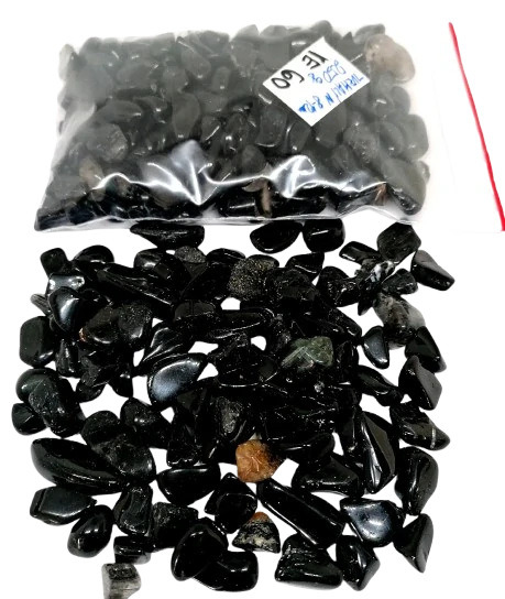 Turmalín skoryl chips – přírodní černý minerál o velikosti zrn cca 7–12 mm. Balení obsahuje 250 g, původ: Mozambik. Vhodné pro dekoraci, jako výplň kolem svíček, do misek s minerály nebo pro výrobu orgonitů. Díky svému lesklému černému vzhledu je atraktivní také jen jako sběratelský kámen.