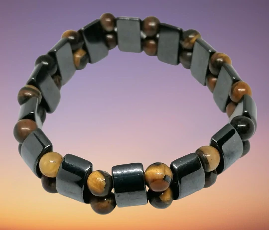 Náramek široký z hematitu a tygřího okaihned 1 ks199 Kč/ ks164 Kč bez DPH