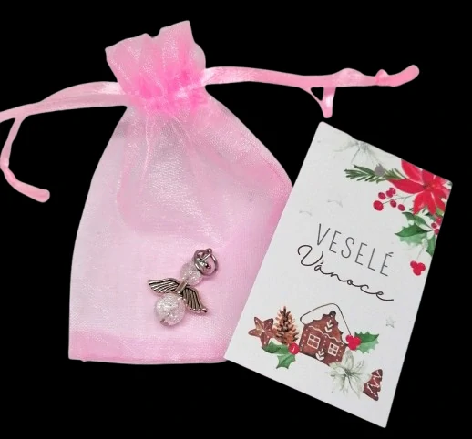 Vánoční balení přívěsku andělíček z pukaného křišťálu.