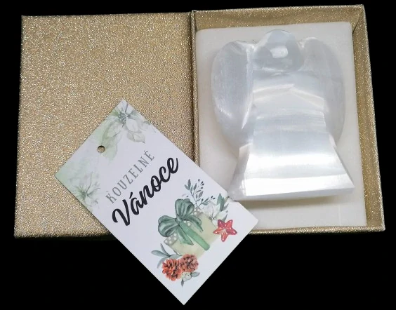 - Vánočně balený selenitový anděl s kartičkou