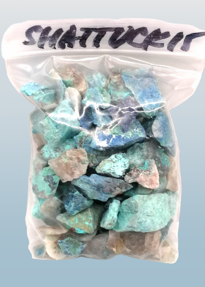 Na fotografii vidíte 100 g shattuckitu, pro představu. Tyto drobnější kamínky jsou vhodné na výrobu šperků, naplnění dekoračních nádob, kolem svíčky nebo na výrobu orgonitů.