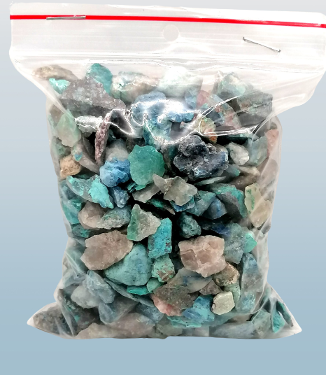 Na fotografii vidíte 350 g shattuckitu, pro představu. Tyto drobnější kamínky jsou vhodné na výrobu šperků, naplnění dekoračních nádob, kolem svíčky nebo na výrobu orgonitů.