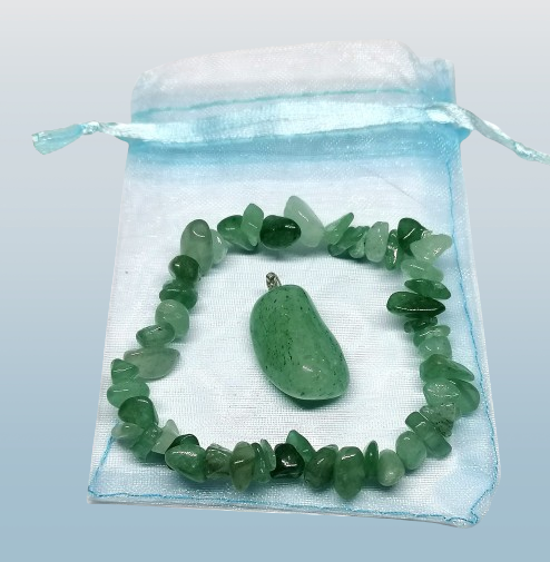 Sada obsahuje náramek a přívěsek z avanturínu zeleného.